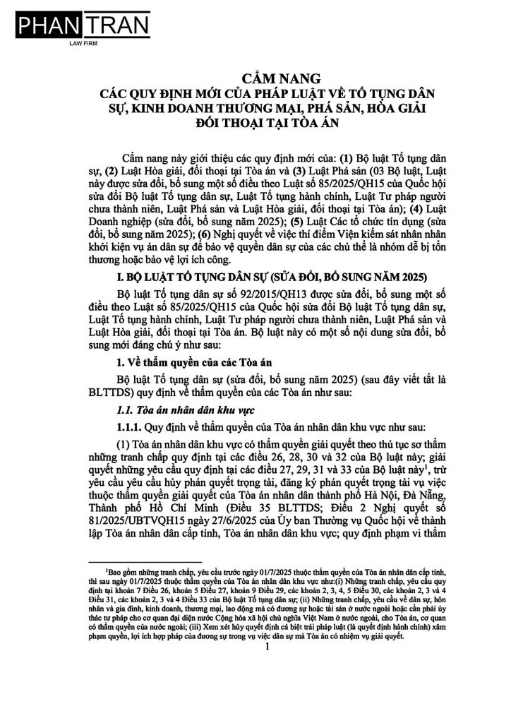 PTL trân trọng giới thiệu tài liệu: “Cẩm nang các quy định mới của pháp luật về tố tụng dân sự, kinh doanh thương mại, phá sản, hòa giải đối thoại tại Tòa án” do Tòa án nhân dân tối cao ban hành.