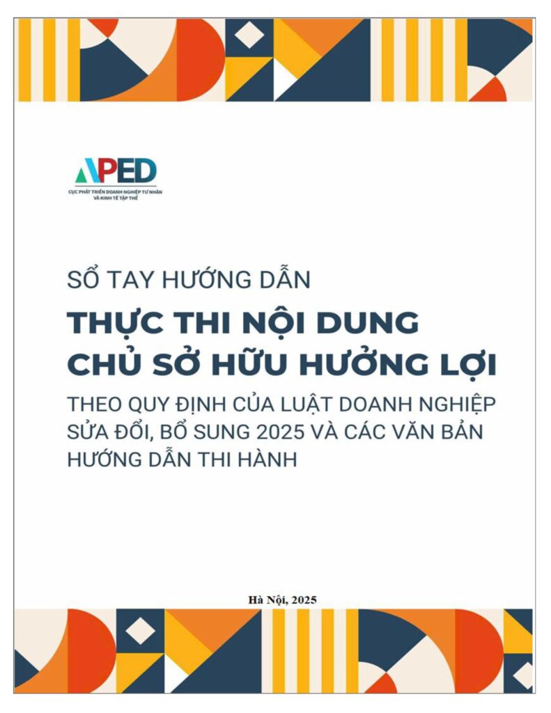 Với mục tiêu hướng dẫn cơ quan đăng ký kinh doanh cấp tỉnh và doanh nghiệp thực thi nội dung CSHHL của Luật Doanh nghiệp sửa đổi, bổ sung 2025, Cục Phát triển Doanh nghiệp tư nhân và Kinh tế tập thể biên soạn cuốn “Sổ tay hướng dẫn thực thi nội dung chủ sở hữu hưởng lợi theo quy định của Luật Doanh nghiệp sửa đổi, bổ sung 2025 và các văn bản hướng dẫn thi hành”.
