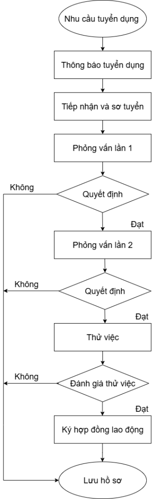 Nếu không lựa chọn được ứng viên phù hợp hoặc ứng viên từ chối nhận việc, Giám đốc sẽ chỉ đạo bộ phận HCNS tiếp tục thông báo tuyển dụng đợt mới.